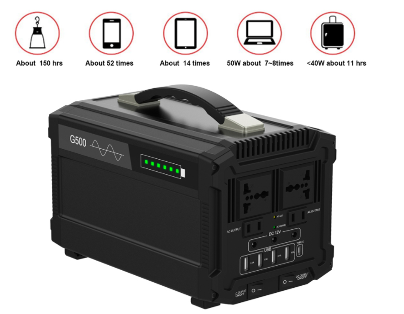 Specification-500w portable power station pure sine wave power up your laptop phone camping llight